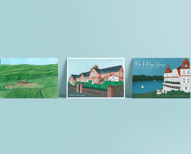 Whether it’s a cherished home, a bustling café, or a stunning landmark, my illustrations are designed to capture the essence and charm of each location in a bright and colorful palette.
